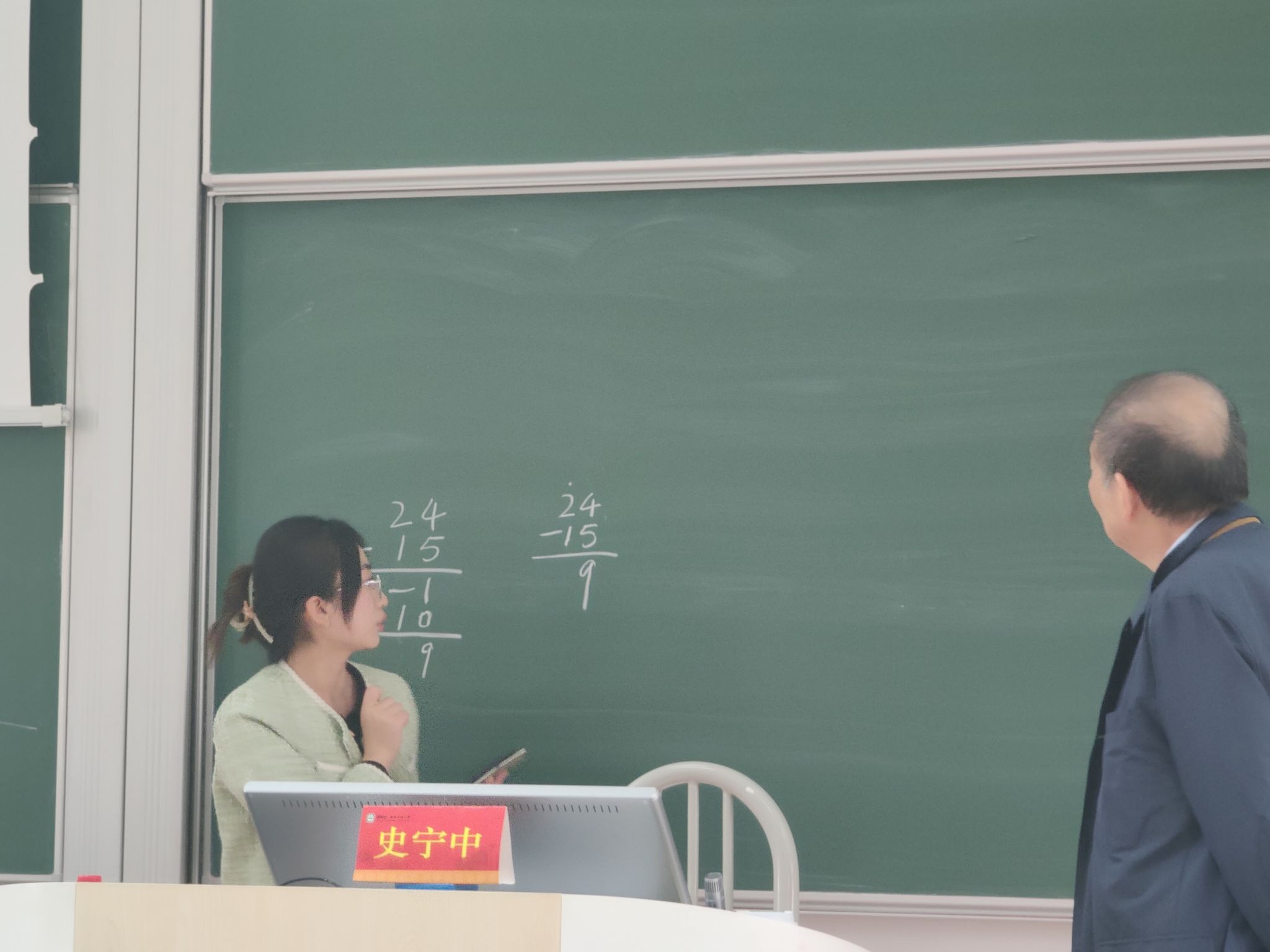 史校长的报告结束,全场响起了激烈的掌声,在场的老师和同学踊跃发言,同史校长在新版义教课标中简易方程内容的删除、过程性经验的培养、减法的运算规律以及尺规作图等方面进行探讨。史校长结合自身研究对这些问题一一解答。最后冯院长对本次报告进行总结,表达了对史校长精彩报告的感谢和对各位数学师范生成长的殷切期望。