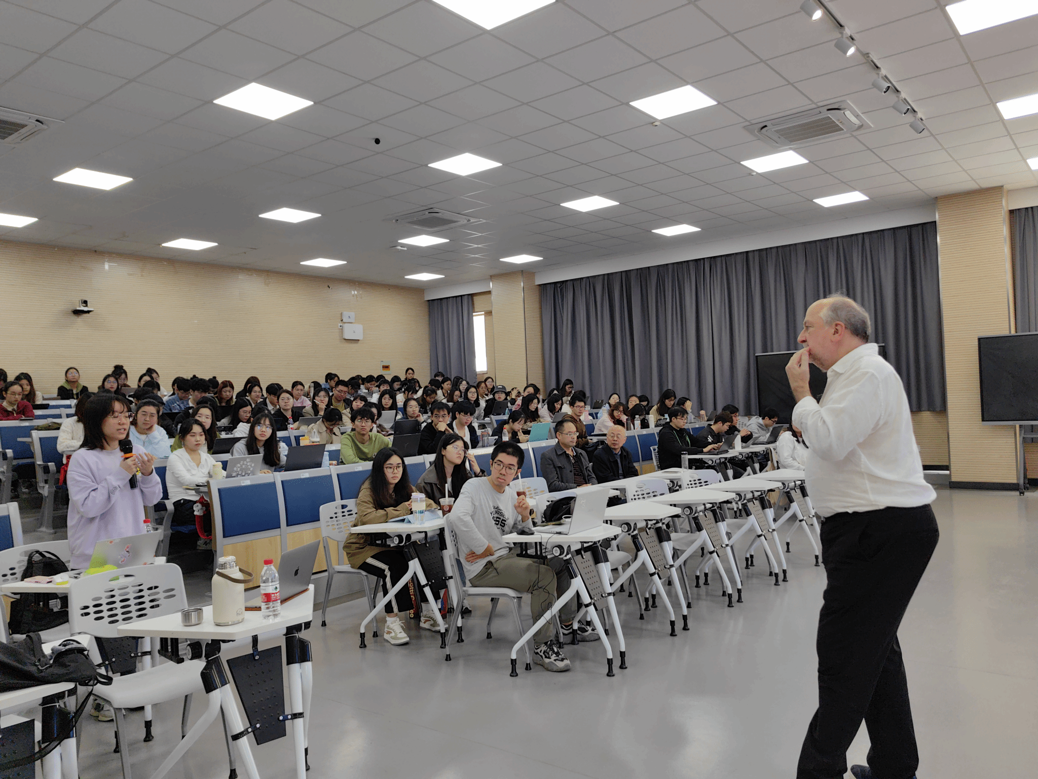 讲座结束后,同学们积极向Justin Dillon教授提出自己的问题,就教师的作用、如何进行评价等问题开展讨论,教授进一步解答同学们提出的问题。
