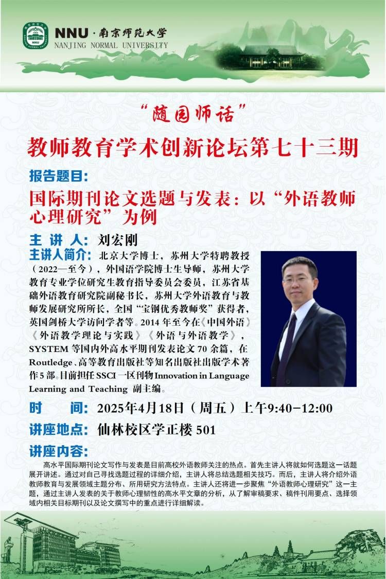 学术预告:“随园师话”教师教育学术创新系列论坛(第七十三期)