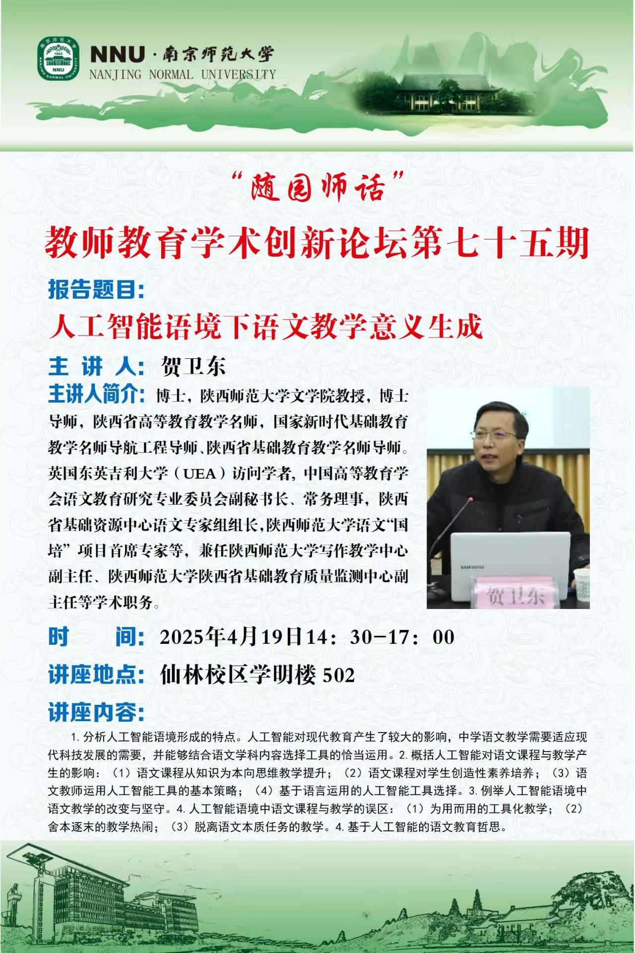学术预告:“随园师话”教师教育学术创新系列论坛(第七十五期)