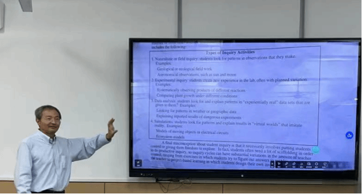 讲座伊始,王平教授向同学们分享了1996年美国颁布了的一系列涉及到科学教育的标准。并向大家抛出了一个问题,“大家有在课堂上见过这样的情景吗?”,王平教授以问题为切入点引发了大家的讨论与思考。
