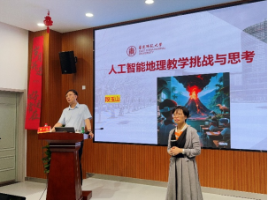 学科教学(地理)专业主办的“人工智能与地理教育的思考”专题讲座在化成楼西117教室成功举办。本次讲座由华东师范大学段玉山教授担任主讲,南京师范大学朱雪梅老师主持,王建、吴向忠、吴向军、孙小红、陆丽云、龚倩等专家出席,2022级、2023级、2024级学科教学(地理)专业同学们积极参与,不少南京市一线教师慕名而来,现场座无虚席,共同探寻地理教育在智能化时代的转型升级之路。