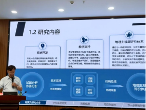 从理论构想落实到实践探索上,段教授展示了华东师大的最新研究成果——基于大语言模型的地理主观题评价系统,该系统为中学一线教师设计,致力于减轻教师负担,促进主观题评分客观性、科学性。段教授从项目背景及研究内容、评价系统开发、当前成果、项目创新点、下一步研究计划进行分享,介绍了项目的技术架构和评价方法的创新之处,让大家对评价工具的系统开发有了更清晰的认识。