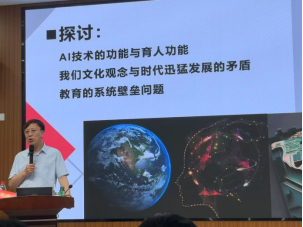 讲座伊始,段玉山教授以一个生动的比喻打开话题:“如果从上海到南京,我应该选择走路还是坐高铁”,引发听众对人工智能技术接受度的共鸣。随后,段教授列举一系列数据来说明在数字化与智能化飞速发展的当下,人工智能正深刻影响着各个领域,教育领域也难以置身事外。在核心素养导向下,地理教育如何与人工智能技术实现深度融合,成为了师范生、在职教师共同关心的问题。段教授提出中学地理具备多重属性,举例阐述了课程属性、学科属性、教育属性,着重强调AI属性是当下值得深入探讨的关键,未来地理课程形态、学习形态和评价形态可能发生的巨大转变,包括传统地理课结构AI重构、知识传授到智能建构、智能诊断与个性化学习评价。“如果AI能帮老师省出一些工作时间,大家希望老师们是用这些时间去‘玩’,还是忙其他的呢?”段教授抛出的问题让大家陷入深思,叩问教育数字化转型进程中人的主体性与技术工具性的边界。