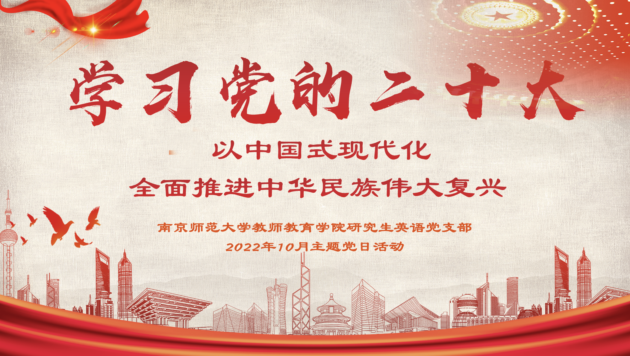 为了深入学习贯彻党的二十大精神,博彩网址大全 研究生英语党支部于2022年10月25日开展了“学习党的二十大,以中国式现代化全面推进中华民族伟大复兴”的主题教育活动。支部结合英语专业特色,学习了“...